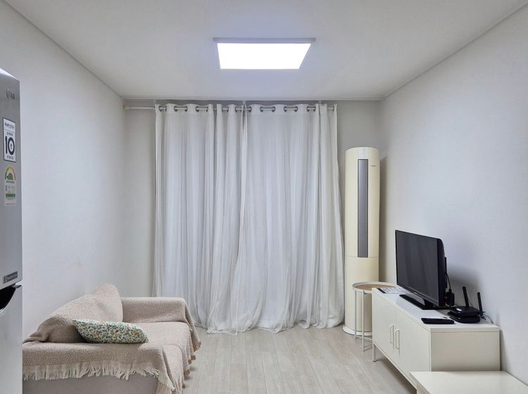✔️거실: 소파, 스마트TV, 에어컨, 선풍기 구비