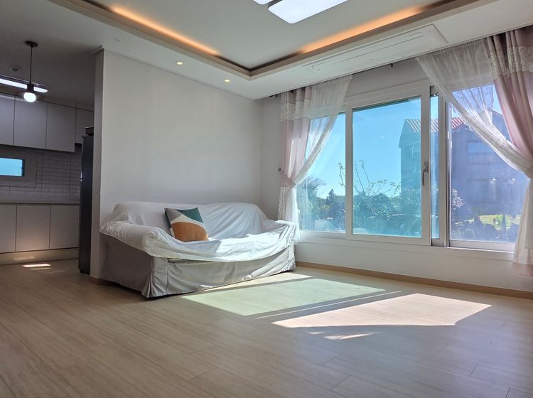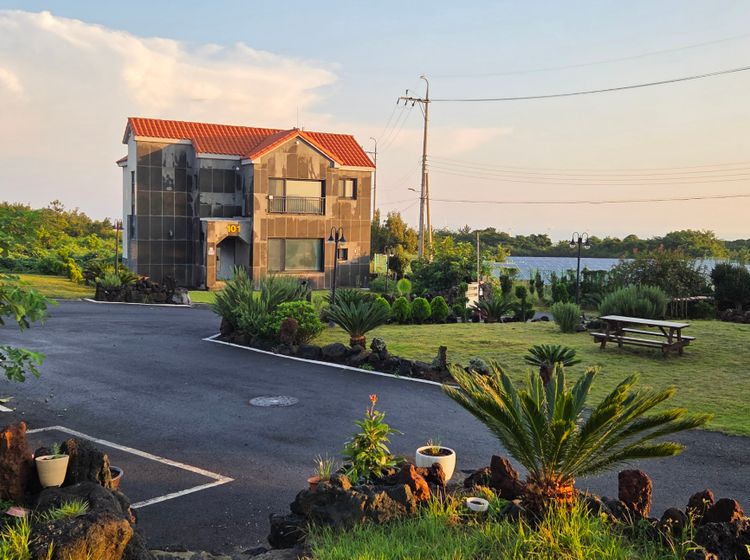 공항버스를 이용하실분은 제주공항 2번게이트에서 101번을타고 함덕해수욕장 하차하시어 상덕천행 버스를 이용하시면 됩니다