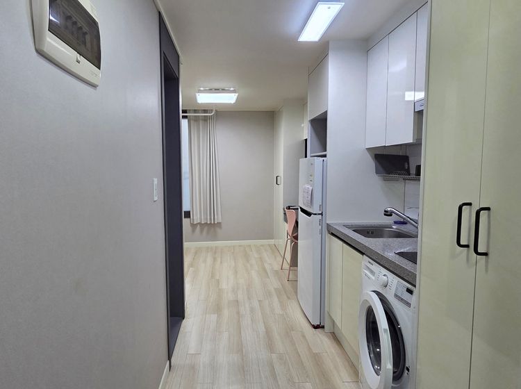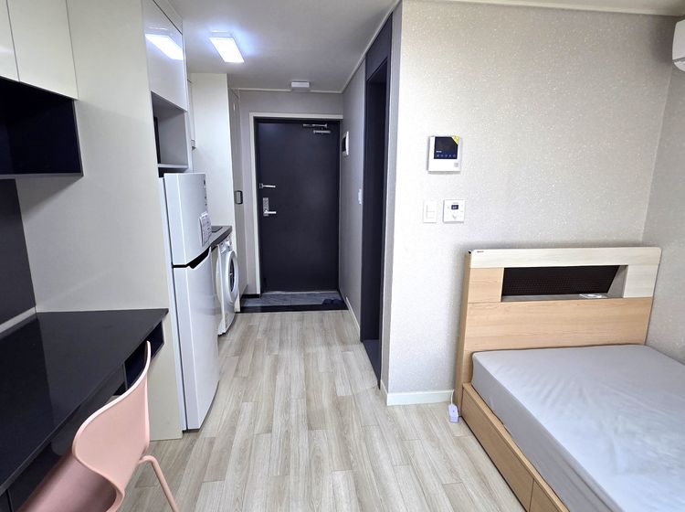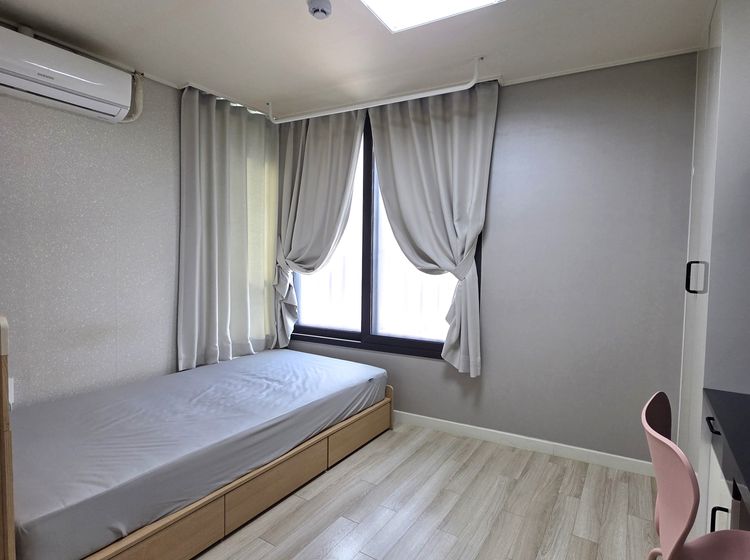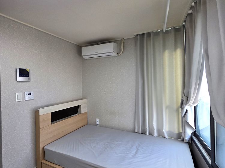 👉숙소설명: 신규리모델링,붙박이장(옷장,이불장,책장 등),냉장고,세탁기,에어컨,개별난방,슈퍼싱글침대(기본 침대+ 매트리스),기가인터넷,9백채널UHD,엘리베이터없음, 4층건물에 2층 코너에 위치해 채광이 좋으며, 천보산 전망이라 조용하고 분위기 있는 생활이 가능합니다.