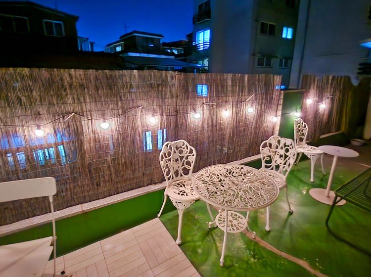 - 냉장고, 인덕션, 전자레인지, 커피포트, 테라스 테이블, 의자