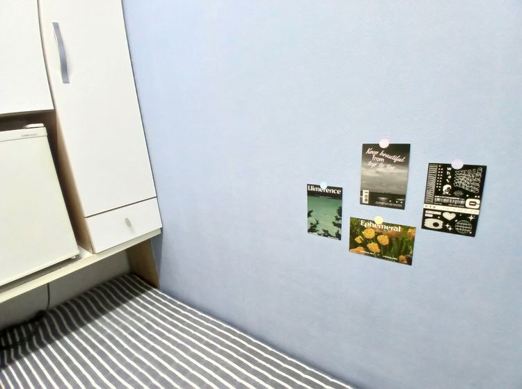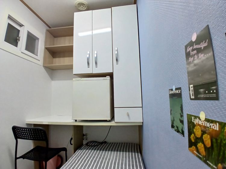 -1인 침대,옷장,개인냉장고,책상,의자가 구비되어있습니다.