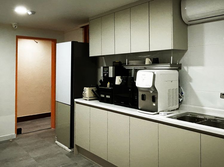 공용 공간에 간단한 조리 시설 이용가능, 세탁실에 세탁기,건조기 무료 사용 가능