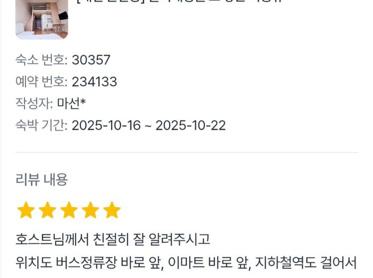 s*n 2025년 11월편히지내다 갑니다 감사합니다